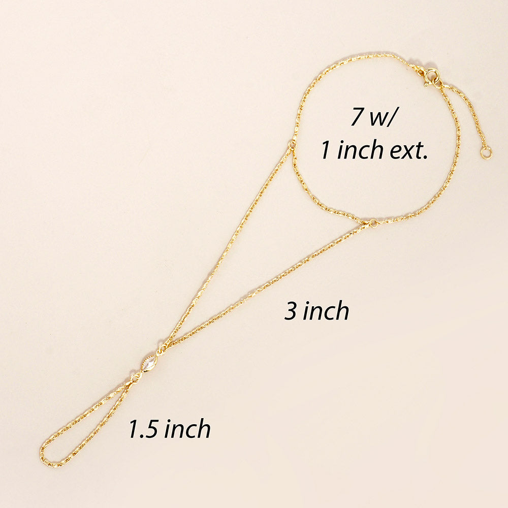 • Minimalist hand chain bracelet featuring a delicate cubic zirconia charm.